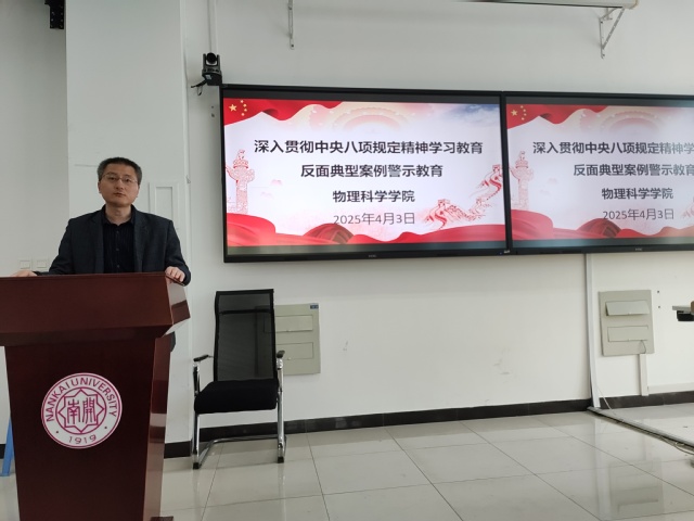副院长邢翠开展违反中央八项规定精神反面典型案例警示教育,并就学院科研经费使用自查自纠工作进行部署说明。