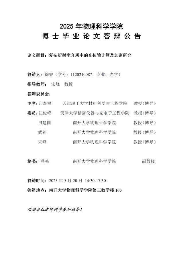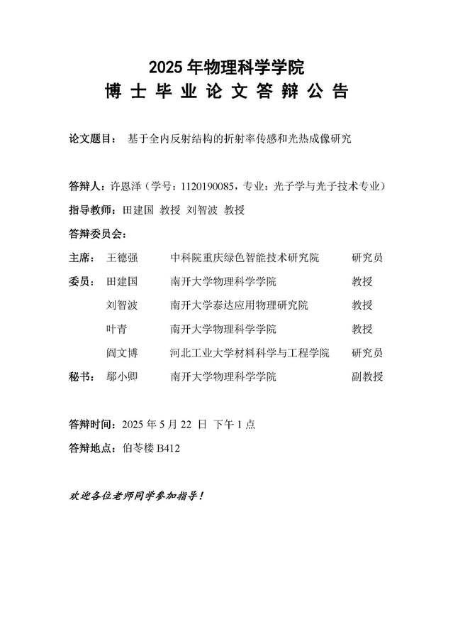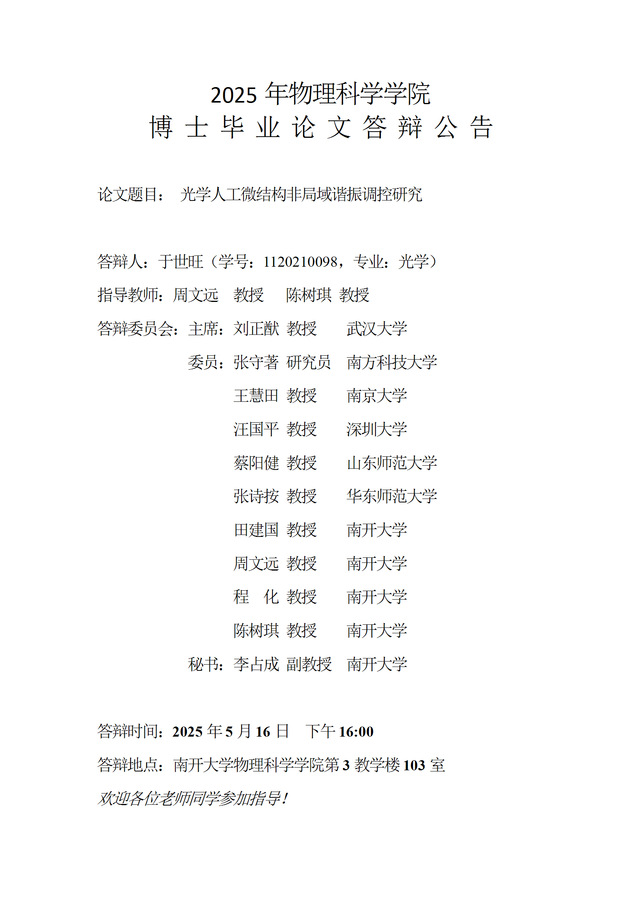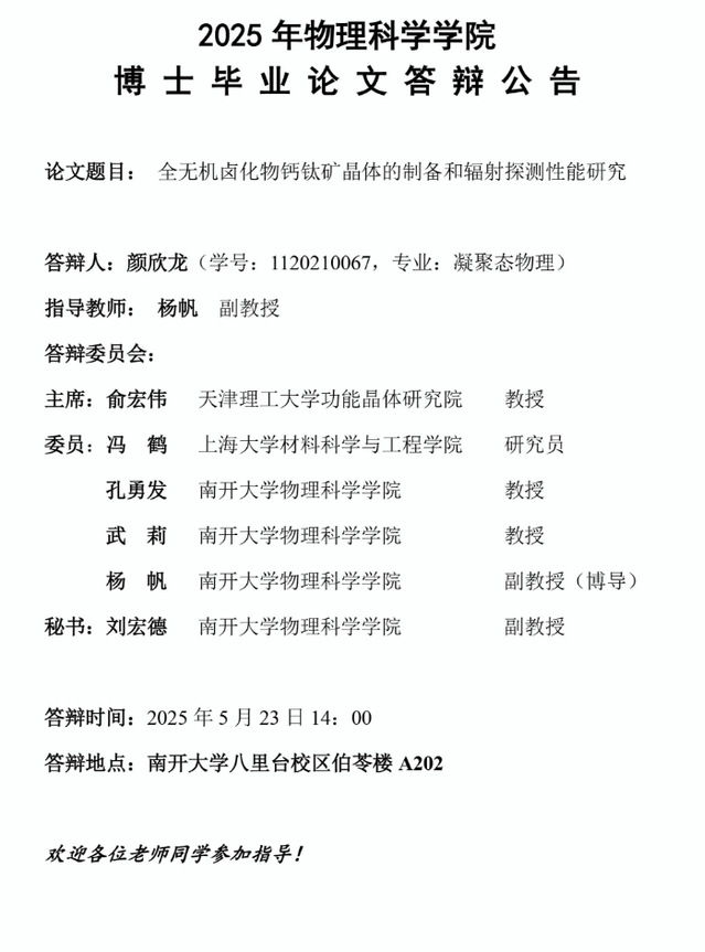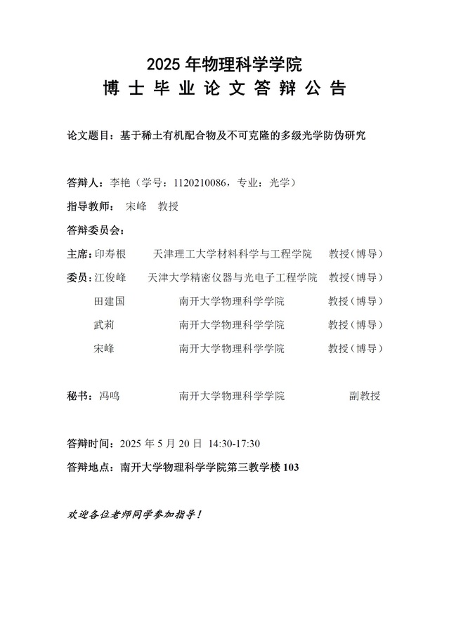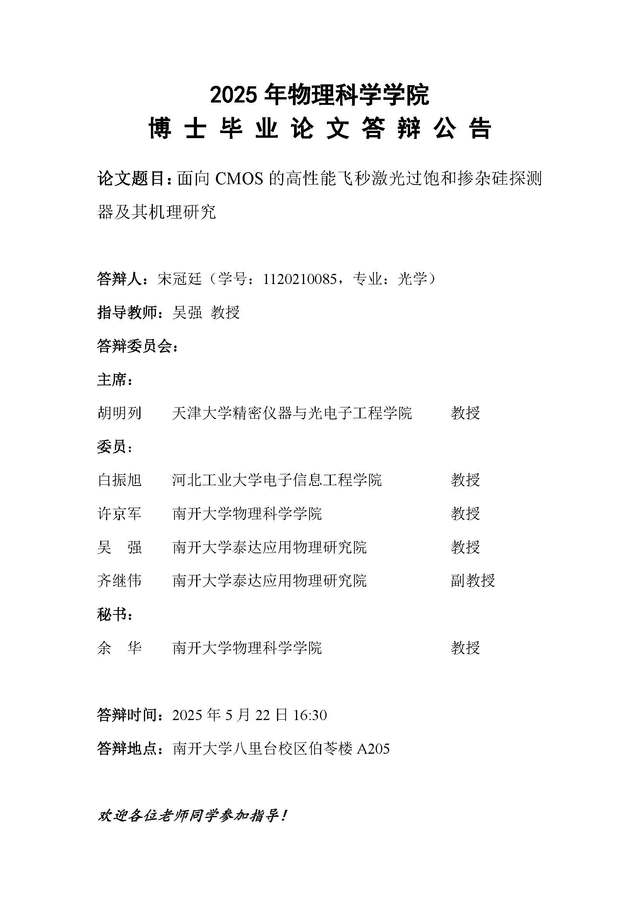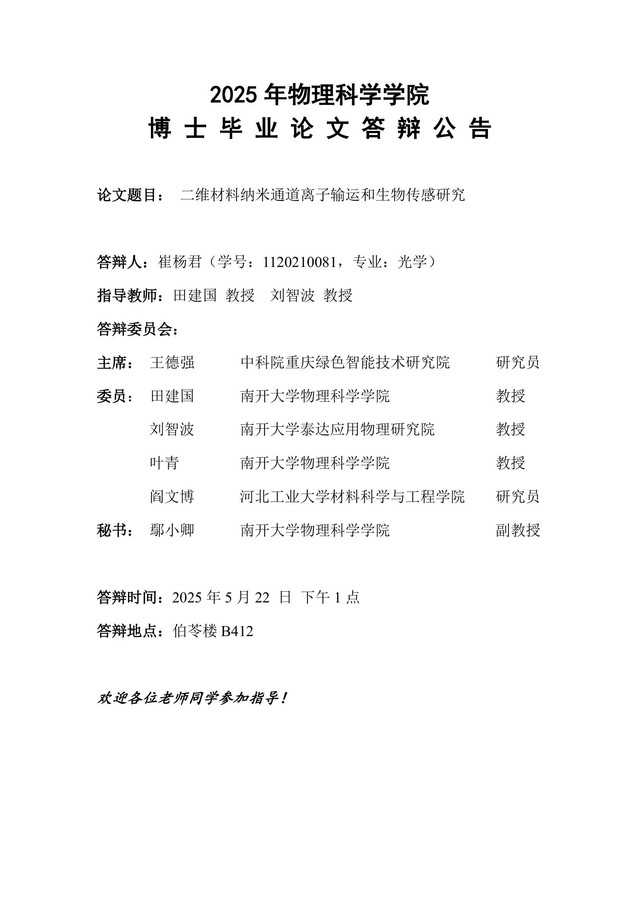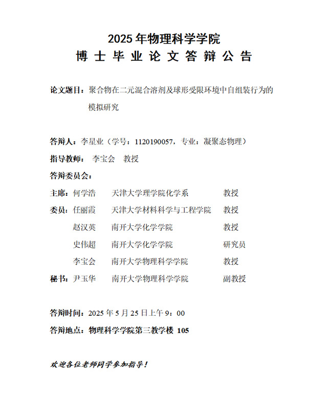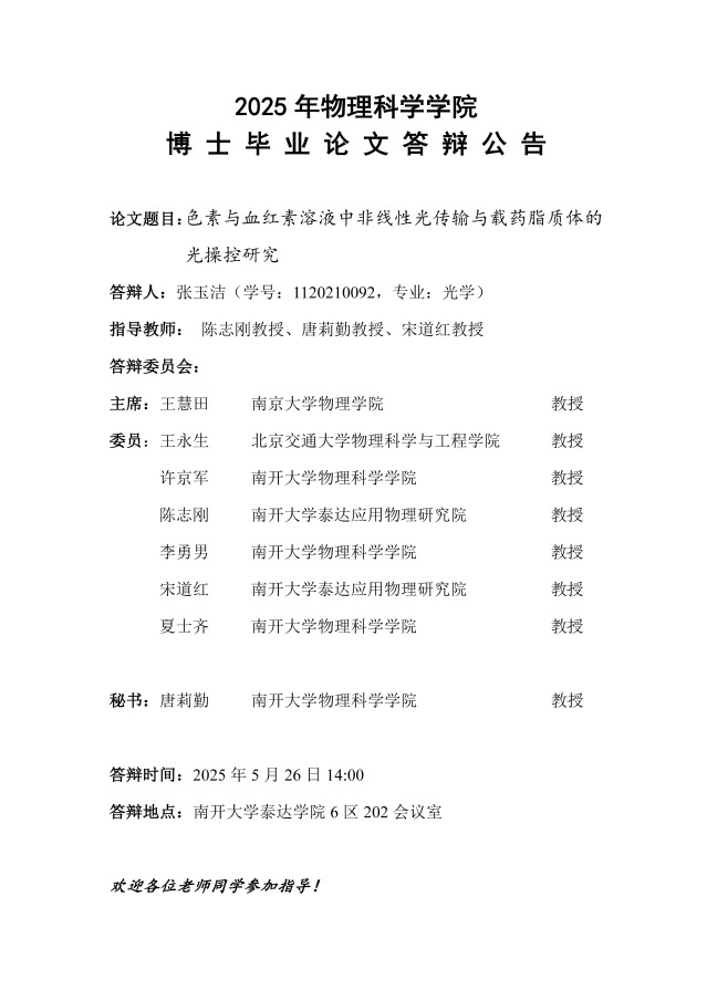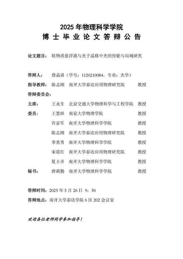 【毕业答辩】2025年春季学期看球88 博士毕业论文答辩公告