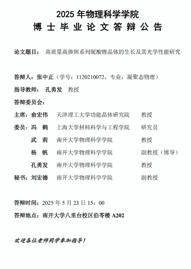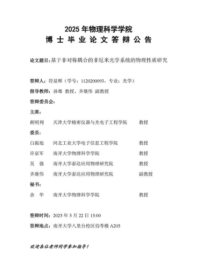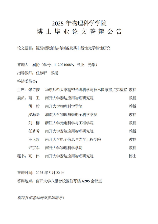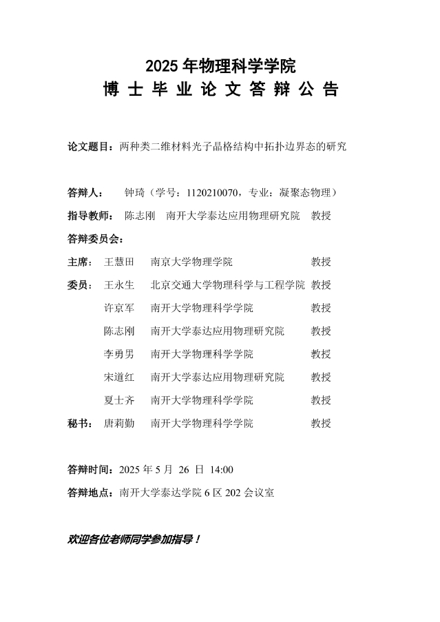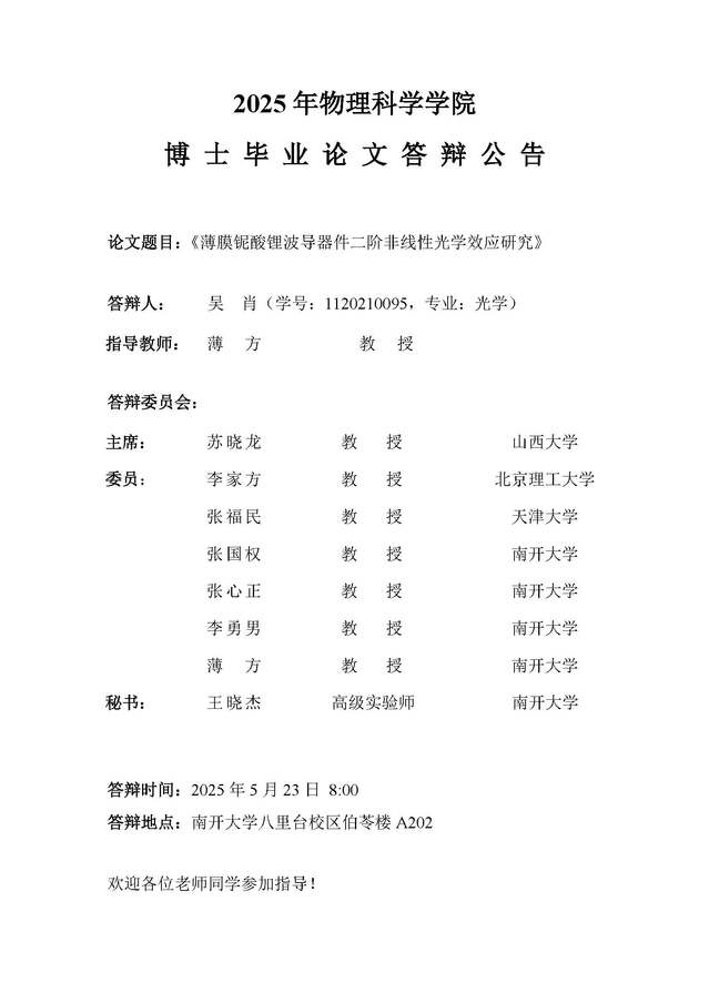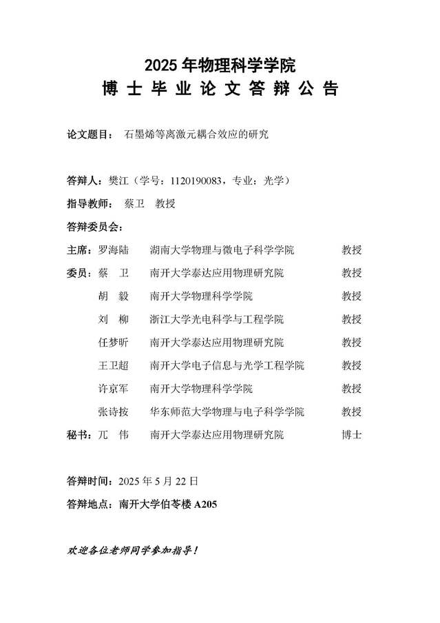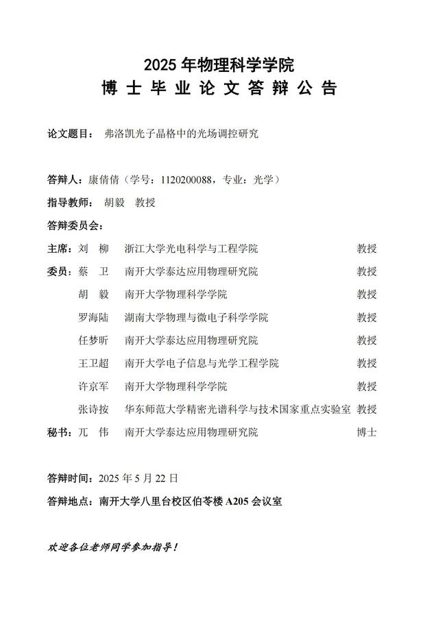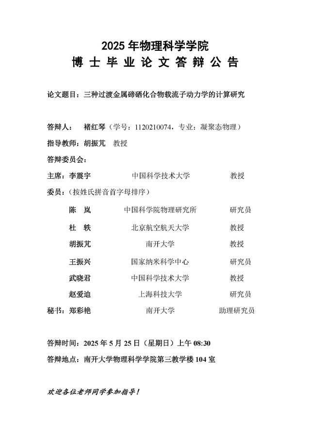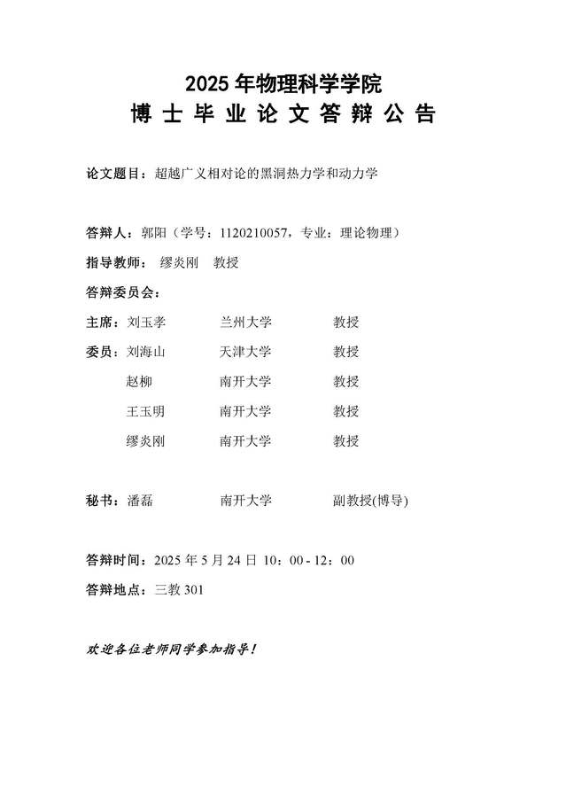 【毕业答辩】2025年春季学期看球88 博士毕业论文答辩公告