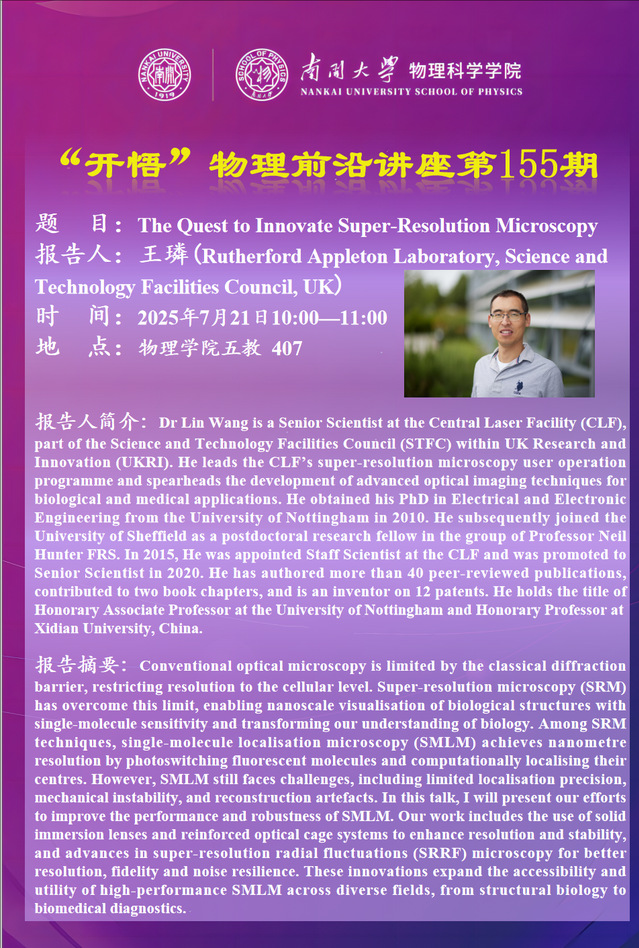 【“开悟”物理前沿讲座 (第155期)】The Quest to Innovate Super-Resolution Microscopy