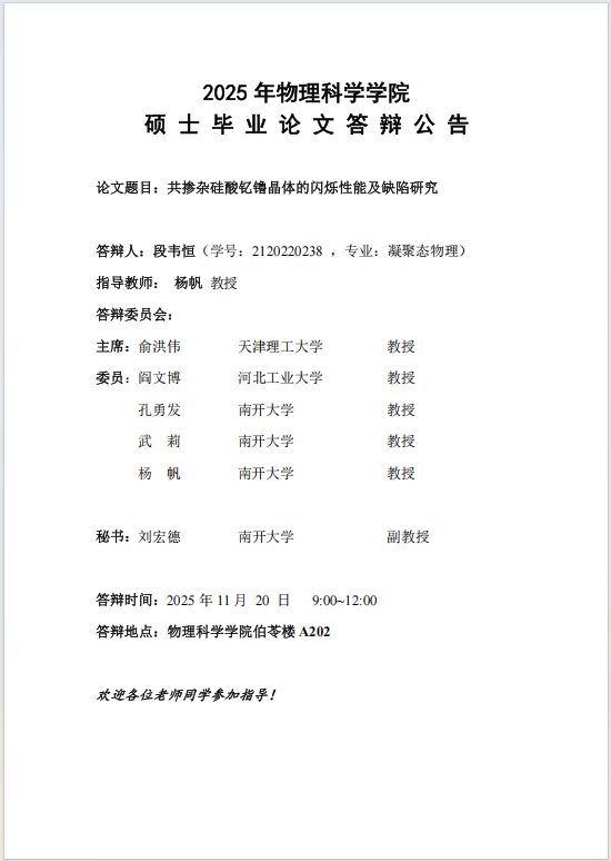 【毕业答辩】2025年秋季学期看球88 博士、硕士毕业论文答辩公告