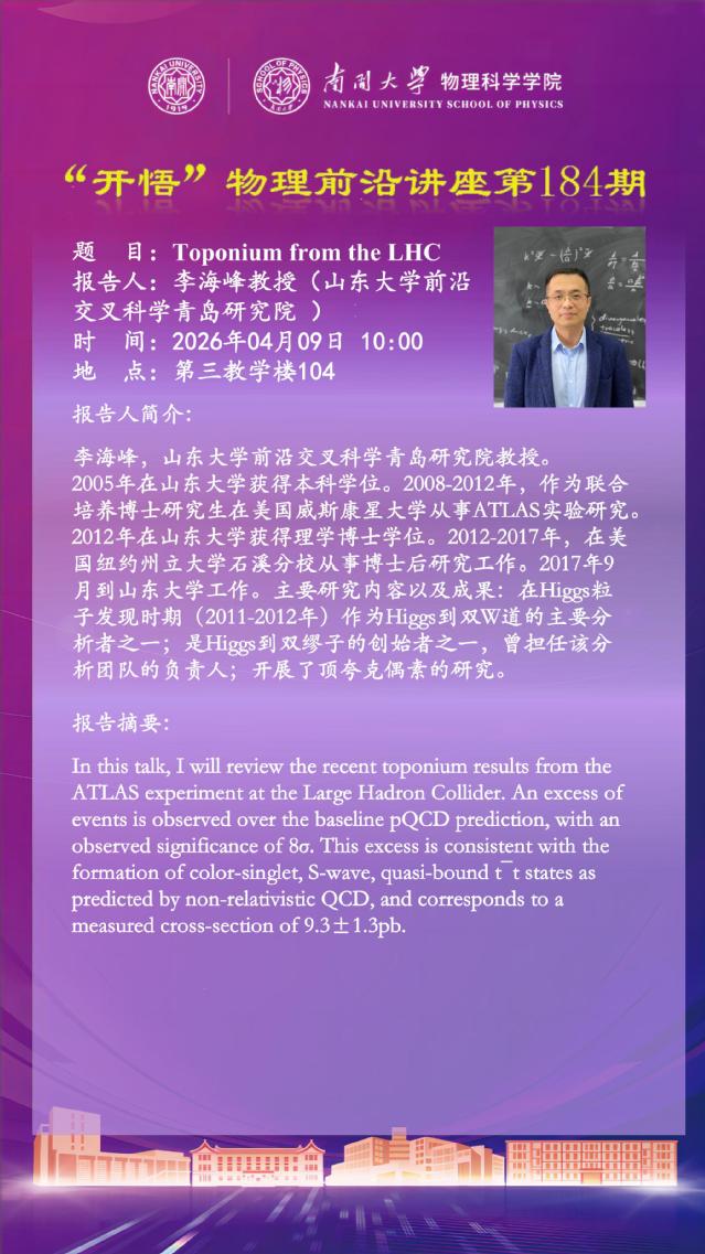 【“开悟” 物理前沿讲座 (第184期)】Toponium from the LHC